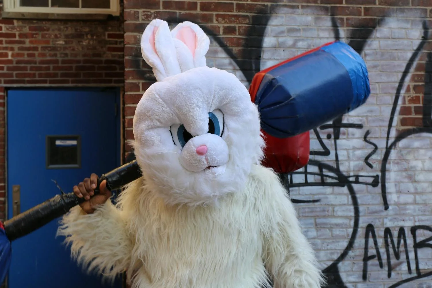FBC is an Easter attraction meant to bring out the competitor in you. The games are designed to challenge you and ultimately make you a better person in every way. There are always several midway punny bunny related games surrounding the main event, which is "The Cage." Participants are locked inside a 20'X20' foot steel cage with three hulking Easter bunnies, all of whom are hell bent on destruction - your destruction. It’s a true test of agility, stamina and quick wit. Steal as many of their eggs as possible in a riveting 60-second battle to the finish. How many you end up with determines your prize, which range from stellar to… well… complete crap. The rabid rabbits will do their best to make sure you collect as few eggs as possible.